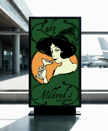 For the outdoor boards, I leaned into old ad styles I found in a book about ads from the 19th century.